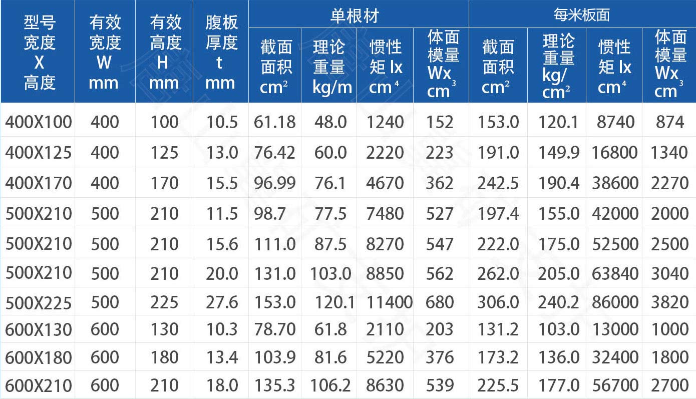 U型钢板桩截面尺寸、截面面积、理论重量及截面特性